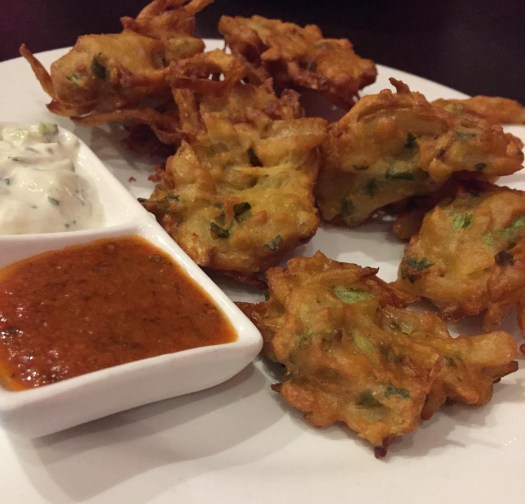 | Onions, spring onions and potatoes lightly fried in chickpea batter marinated with mustard oil. | |